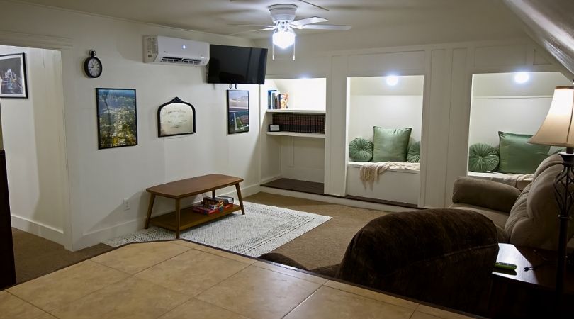 In 2023, extensive renovations refreshed the property, bringing it to the modern era with bright, light interior and cozy reading nooks. There’s a full kitchen, office space, bathroom, and everything you’d need for a short stay.